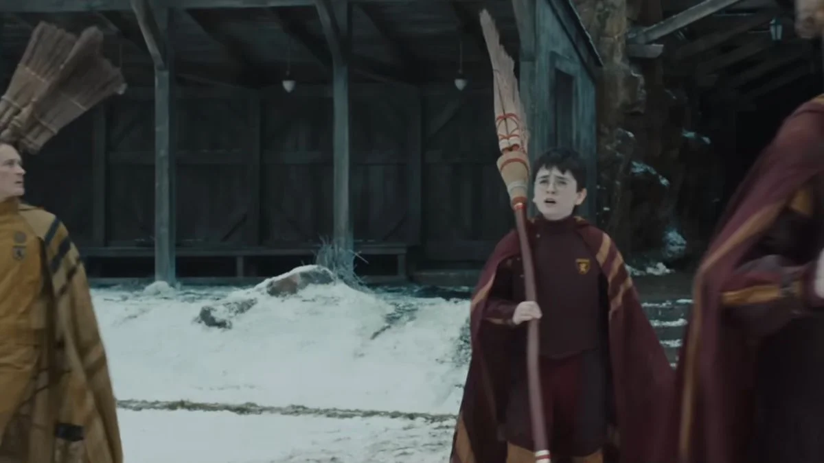 W zwiastunie pojawił się co prawda przebłysk, że Harry dostał w prezencie Nimbusa 2000, jednak nie wszyscy mogli dostrzec, że miał już okazję przetestować tę miotłę. W pewnym momencie pojawia się scena, kiedy Harry nieco zdenerwowany wkracza na boisko, trzymając nowiutki prezent od profesor McGonagall. Widać, że jego najnowsza miotła ze swoją gładszą rękojeścią i niepostrzępionymi końcami wyraźnie odstaje od starych i wyjeżdżonych mioteł jego kolegów z drużyny. Ciekawa różnica.