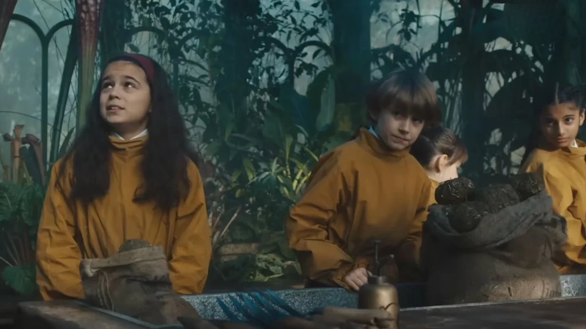 Scena ze słynnej lekcji zielarstwa również znalazła się w zwiastunie. Widać na niej nie tylko Arabellę Stanton w roli Hermiony Granger, ale również debiutanta Rory'ego Wilmota, który wciela się w Neville'a Longbottoma. Chłopiec wydaje się być skupiony na zajęciach nie bez powodu - w końcu zielarstwo to jego ulubiony przedmiot, o czym przekonamy się w 4. sezonie na podstawie powieści "Harry Potter i Czara Ognia".