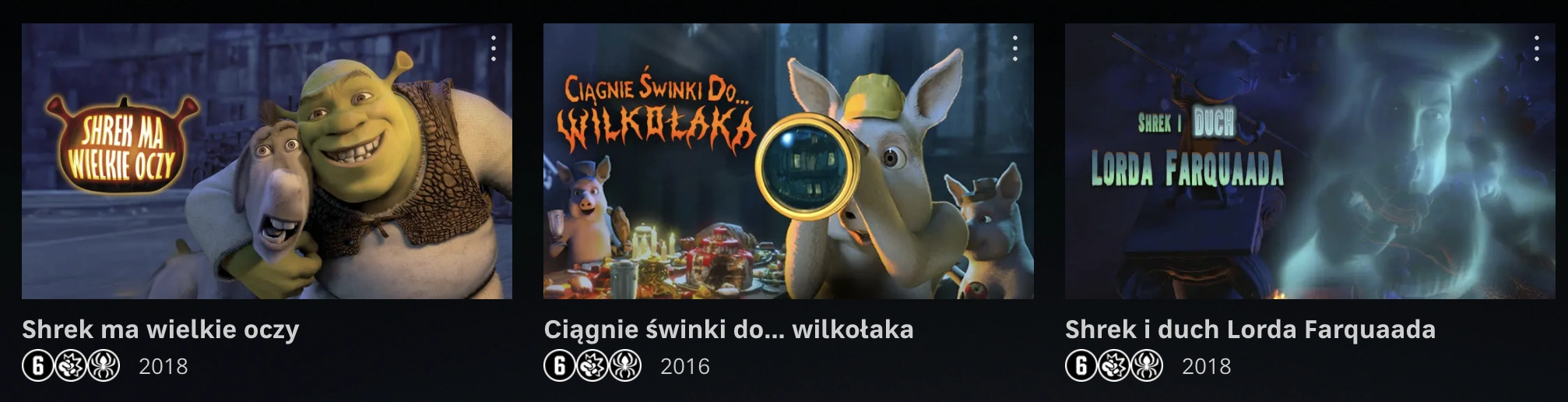 Wśród nowości serwisu od HBO znalazły się takie produkcje jak: "Shrek ma wielkie oczy", "Shrek i duch Lorda Farquaada", "Ciągnie świnki do... wilkołaka" i "Potwory kontra Obcy: Dynie-mutanty z kosmosu" (ta ostatnia nie należy do uniwersum Shreka, ale jest jedną z krótkometrażówek, którą również można obejrzeć w serwisie). Wszystkie z nich zrealizowane są w mrocznym klimacie i są idealnymi propozycjami na Halloween.